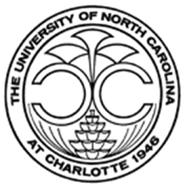 UNC Charlotte seal’s elements are: the modern arches (the tulip design from the canopy of the Kennedy Building) at the top to symbolize that this is a twentieth century university; two Cs in the middle to represent Charlotte College, from which the new campus sprang; and the pine cone at the bottom for the Old North State [land of the longleaf pine]. The date on the seal is 1946, the year in which the institution began as the Charlotte Center of the University of North Carolina.